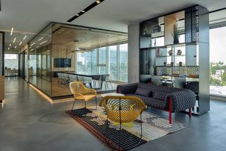 Цельностеклянные офисные перегородки GLASS-SOLUTION с черной фурнитурой - применяется в минималистичных и лофтовых пространствах, популярное решение в остеклении офисных простанств. Перегородки выполнятся с минимумом видимой фурнитуры, с маятниковыми стеклянными дверьми, дверьми в алюминиевых коробках, с различными видами ручек и петель. Доступна художественная обработка стекла: матирование стекла, фотопечать на стекле, фьюзинг - все это сделает ваш офис уникальным. Видимый профиль у конструкции: 20х20, 20х40, 30х40 мм.