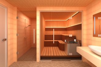 Стеклянная перегородка в сауну и душевую выполняется в различном дизайне и форме конструкции. Если помещение под душевую не выше 2 200 мм, рекомендуем оставлять над дверью свободное пространство, обеспечив циркуляцию воздуха.